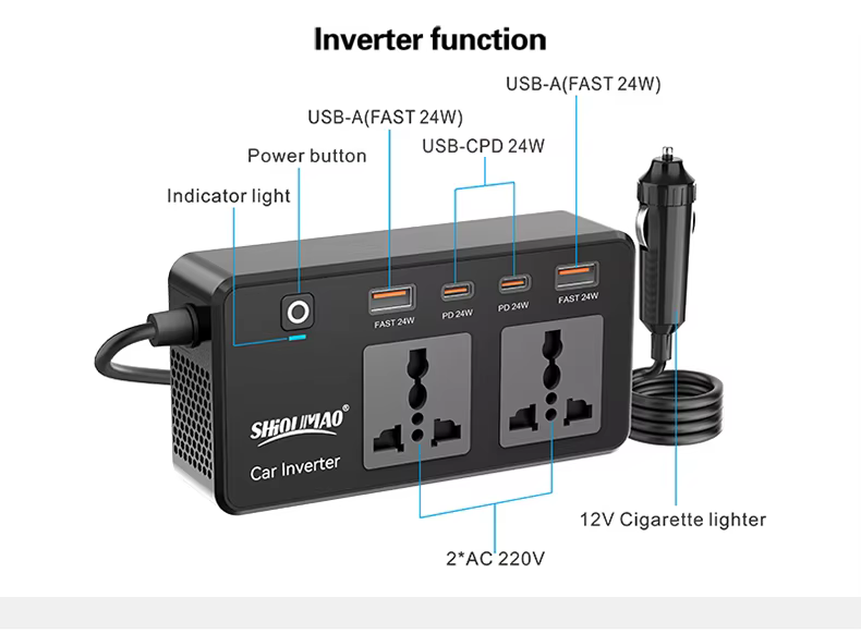- Car Usb Adapter Car Inverter 12V 220V Car Notebook Mobile laptop Charger Inverter