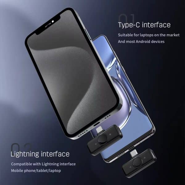 - Mini Condenser UHF Wireless 4-in-1 Dual Lavalier Microphone Small Collar Clip for iPhone Type C Micro Cravat San Fil