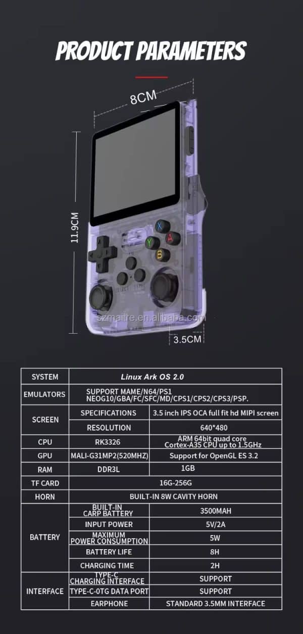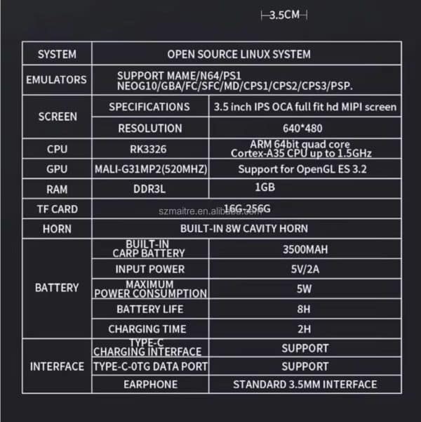 CPU: RK3326 / ARM 64-bit Cortex-A35 (Up to 1.5GHz)