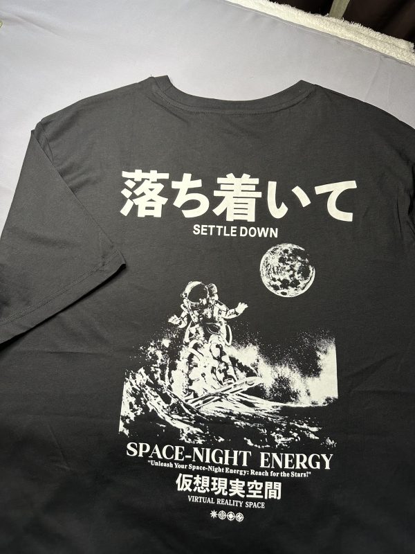 - T-Shirt-Settle Down Space-Night Energy Astronaut Surfing Graphic